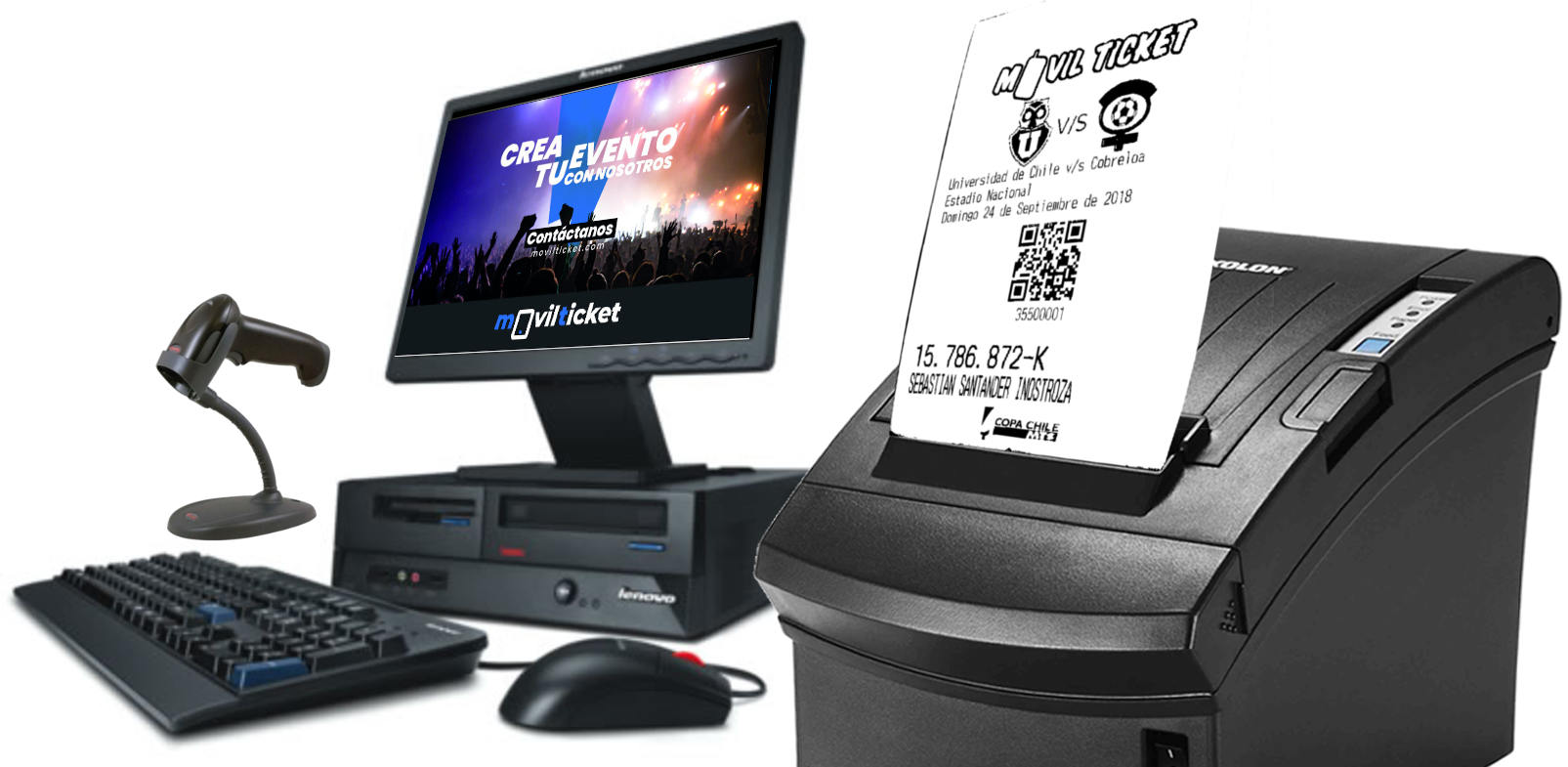 Disponemos de un sistema de para la venta por caja en la cual Móvil ticket provee de Impresoras tanto de Ticket Duros Este sistema permite que organizador pueda emitir los ticket en el momento, de esta forma al organizador no paga por ticket que le puedan sobrar ya estos son generados en el momento, por otra parte tener el registro de aquella persona que compra.